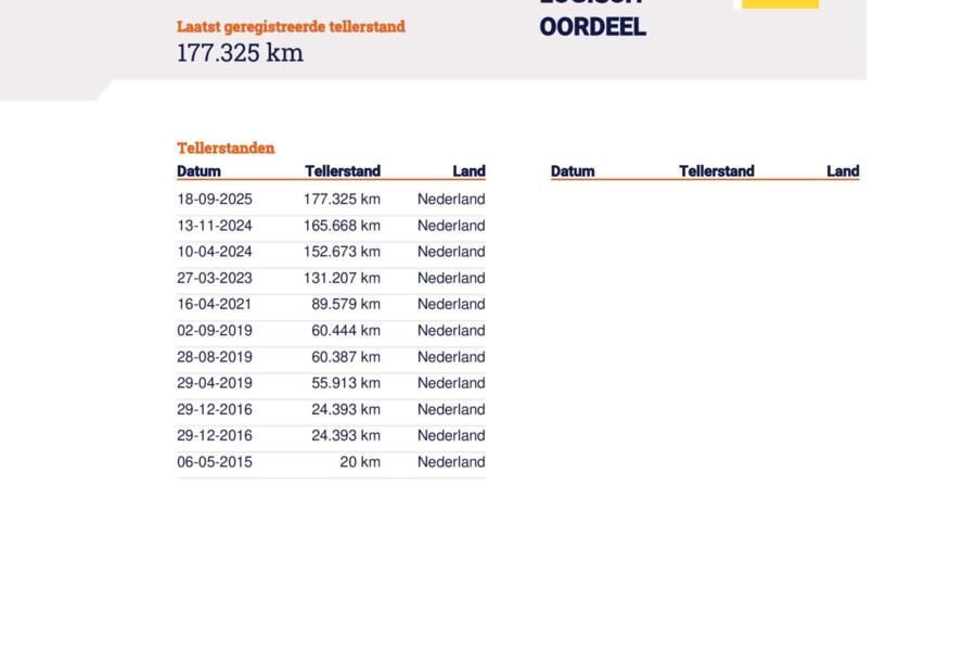 KILOMETERSTAND SLECHTS 177.325 KM, MET RDW-VOERTUIGRAPPORT.