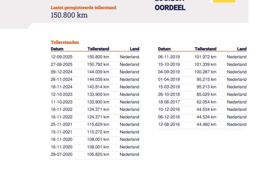 KILOMETERSTAND SLECHTS 150.800 KM, MET RDW-VOERTUIGRAPPORT.
